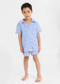 Con su diseño de rayas celestes y detalles en rosa pastel, esta pijama combina estilo, frescura y comodidad para las noches más tranquilas y los sueños más divertidos.